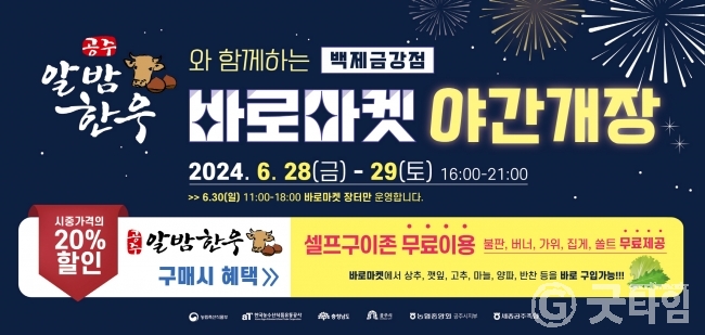 [굿타임] = 이강부 기자 = 공주시는 충남 대표 직거래장터인 바로마켓 백제금강점을 오는 28일과 29일 양일간 오후 9시까지 야간 개장한다.