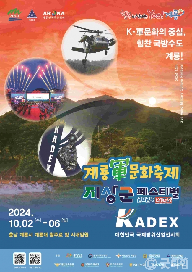 한편 계룡군문화축제, 지상군페스티벌, KADEX2024는 오는 10월2일부터 6일까지 5일간 충남 계룡대 활주로와 엄사면 일원에서 동시에 개최될 예정이다.