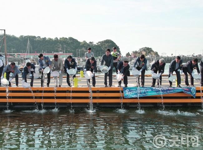 사전 행사로 수산자원 회복과 어업인 소득을 증대키 위해 조피볼락 10만미를 장고항과 인근 해역에 방류했다.