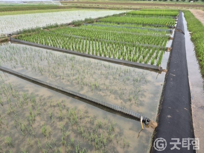 연구를 위해 도 농업기술원은 안전 출수 한계기에 따라 도내 5개 지역을 선정해 올해부터 벼 이앙과 담수 직파를 3년간 진행하며 현재 5월10일, 30일, 6월20일 3차례에 걸쳐 시기별 벼 이앙과 직파를 마친 상태다.