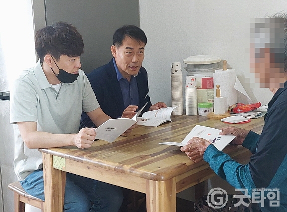 [굿타임] = 이강부 기자 = 계룡시 엄사면 행정복지센터는 혹서기 폭염을 대비해 독거노인 등 온열질환에 취약한 저소득 가구에 여름용품을 전달했다.