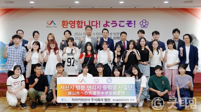 이번 중학생들의 방문은 민선 8기 중학생 국내외 역사문화탐방 지원 공약에 따라 서산시와 텐리시간 학생들의 국제교류를 지원하는 업무협약후 첫 공식 방문이며 시는 시청 중회의실에서 이완섭 시장과 방문단이 참석한 가운데 환영식을 개최해 텐리시 지역 중학생들의 방문을 환영했다.