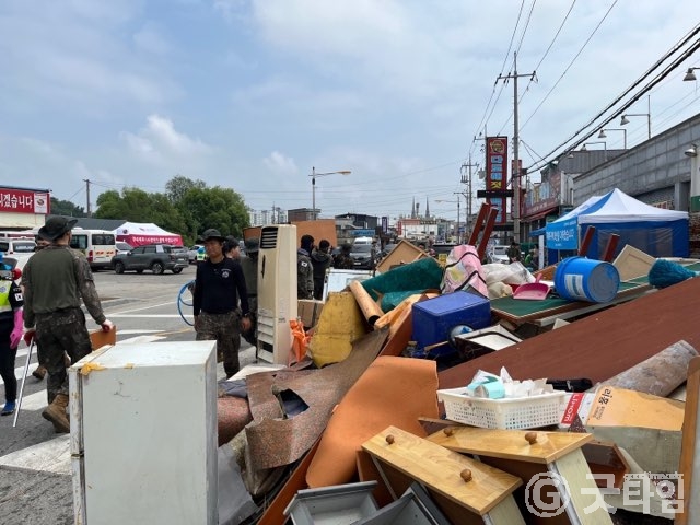 [굿타임] = 이강부 기자 = 논산시가 집중호우 피해 조사와 함께 자원봉사 인력을 현장에 투입해 신속한 복구작업에 총력을 기울인다.