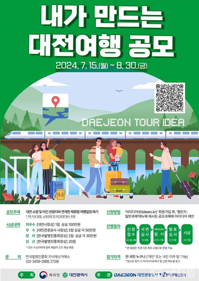 이번 공모는 전국 여행애호가들의 참여를 통해 대전의 매력 있는 관광 콘텐츠를 발굴커자 대전시와 특허청이 함께 기획한 행사다.