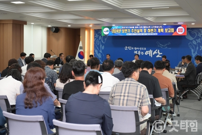 [굿타임] = 이강부 기자 = 예산군은 지난주 많은 비로 인한 수해가 발생함에 따라 당초 개획된 하반기 업무보고회를 취소했으나 수해복구가 어느 정도 정리되자 군청 대회의실에서 2024년 상반기 추진실적과 하반기 계획 보고회를 다시 개최했다.