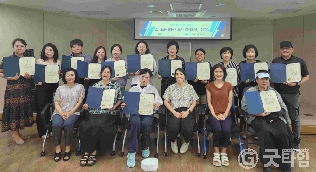 [굿타임] = 이강부 기자 = 계룡시 시 보건소에서 4060 재도약 준비 클래스의 일환으로 마련된 스마트폰 활용 지도사 양성과정 수료식을 가졌다.