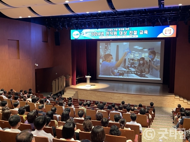 [굿타임] = 이강부 기자 = 예산군은 군청 추사홀에서 전공직자를 대상으로 친절과 악성민원 응대 교육을 진행했다.