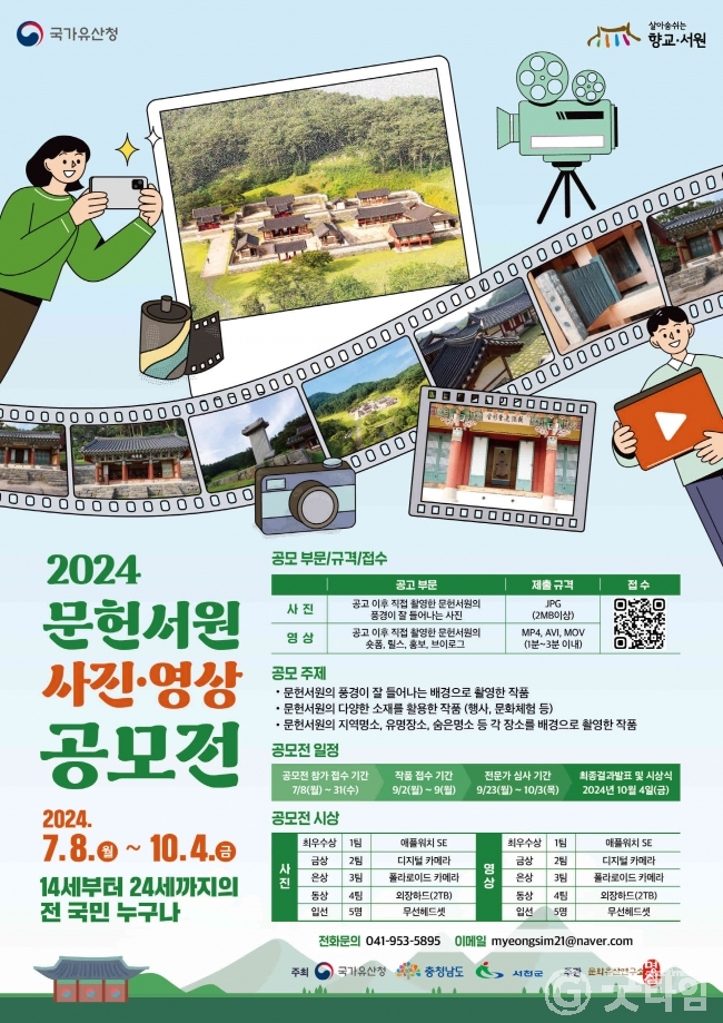 한편 이번 공모전은 국가유산청의 향교, 서원 국가유산 활용 사업의 하나로 국가유산청, 충남도, 군이 후원하며 문화유산연구소 명심이 주관한다.