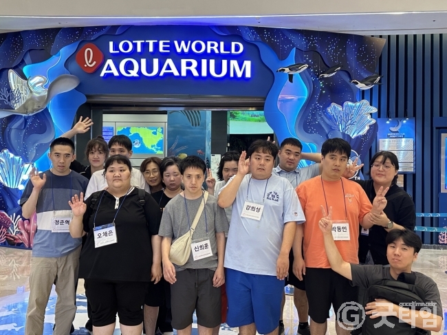 [굿타임] = 이강부 기자 = 사)충남장애인부모회 아산시지회가 운영하는 아산시두리사랑주간보호센터는 서울 송파구에 있는 롯데월드 아쿠아리움에서 현장학습을 진행했다.