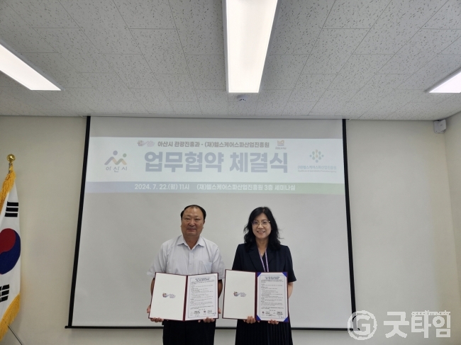 [굿타임] = 이강부 기자 = 아산시는 헬스케어스파진흥원과 아산관광 홍보 활성화를 위한 업무협약(MOU)을 체결했다.