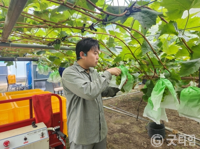 [굿타임] = 이강부 기자 = 논산시 육군병장 샤인머스켓의 본격적인 출하가 시작되며 소비자와의 만남이 앞당겨졌다.
