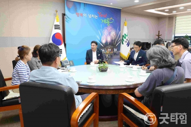 [굿타임] = 이강부 기자 = 계룡시는 지난 31일과 8월1일 시청 상황실에서 숙박업과 외식업 관련 종사자와 간담회를 열었다.