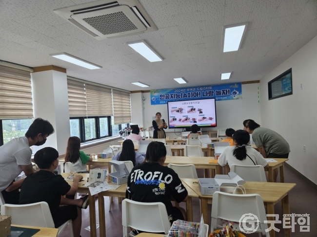 [굿타임] = 이강부 기자 = 부여군 드림스타트는 부여진로직업체험지원센터에서 초등학교 5~6학년 아동을 대상으로 진로지도 체험 프로그램 인공지능아 나랑 놀자를 7월 한달간 4차례에 걸쳐 진행했다.