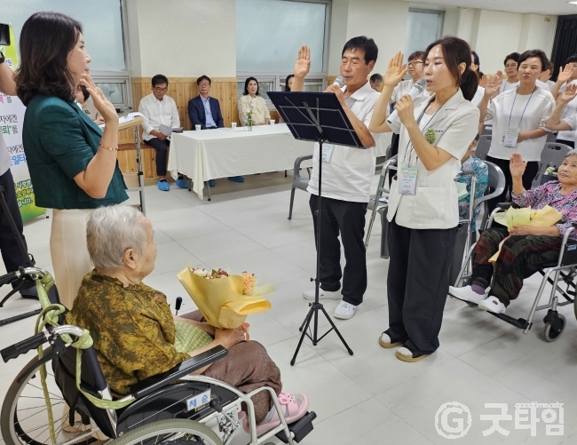 관내 노인복지시설 차원에서 노인학대 예방과 돌봄 서비스의 질적 향상을 위한 존엄케어 선서식을 진행해 눈길을 모으고 있다.