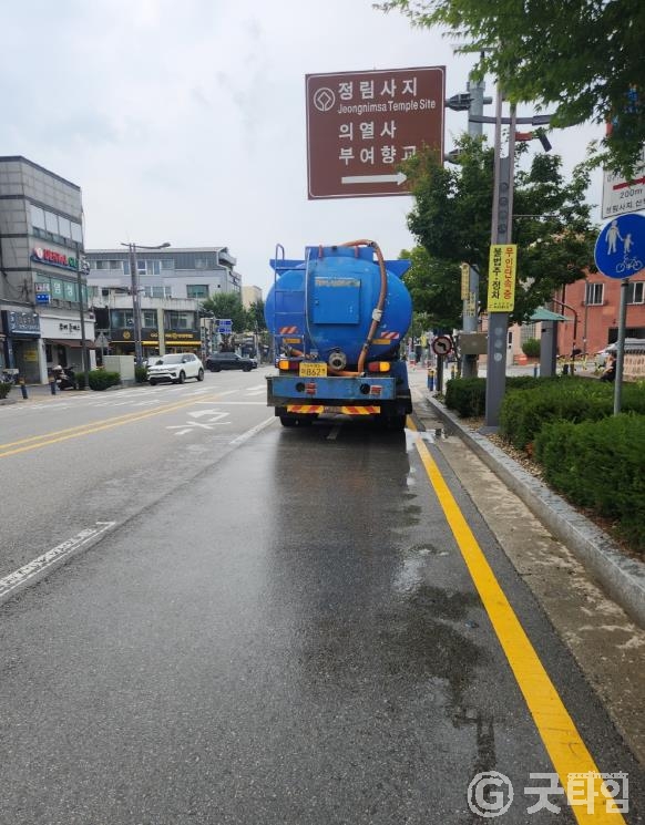 무더위가 극에 달했던 8월초부터는 부여 관내 도로에 살수차를 동원해 열섬현상을 완화하고 있으며 온열질환자 발생을 최소화키 위해 그늘막, 양산대여소, 안개형 냉각수 분사, 햇빛 차단 지붕 등을 운영중이다.