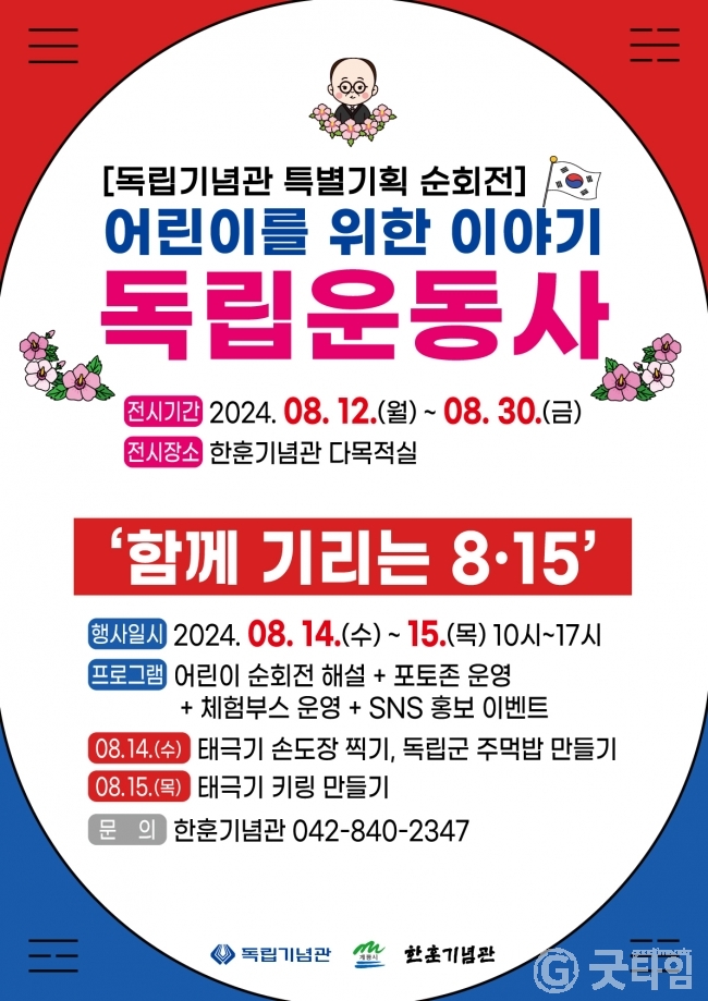 [굿타임] = 이강부 기자 = 계룡시는 제79주년 광복절을 맞아 관내 신도안면에 소재한 한훈기념관에서 어린이를 위한 다양한 행사를 개최한다.