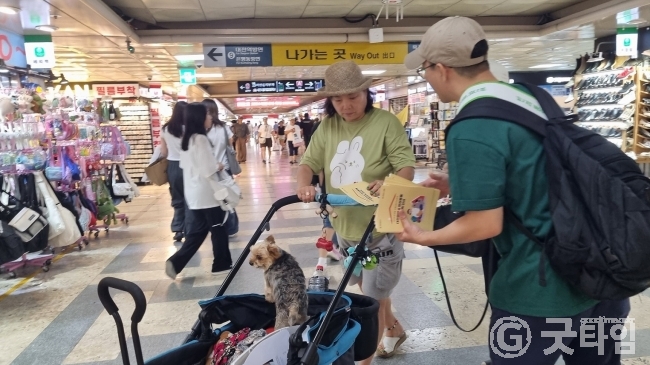 [굿타임] = 이강부 기자 = 대전시는 성숙한 반려문화 정착을 위해 대전 0시 축제 현장에서 축제 방문시민을 대상으로 펫티켓 홍보 캠페인을 실시했다.