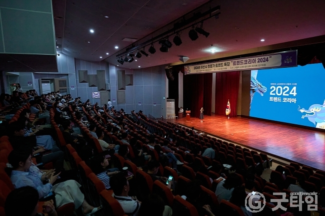 이번 강연에서 최지혜 박사는 2024년 10대 소비트렌드 키워드인DRAGON EYES를 중심으로 분초 사회, 요즘 남편 없던 아빠, 스핀오프 프로젝트, 호모 프롬프트(AI 활용 능력), 리퀴드 폴리탄, 돌봄경제 등 대한민국의 변화를 추동할 사회현상을 소개했다.