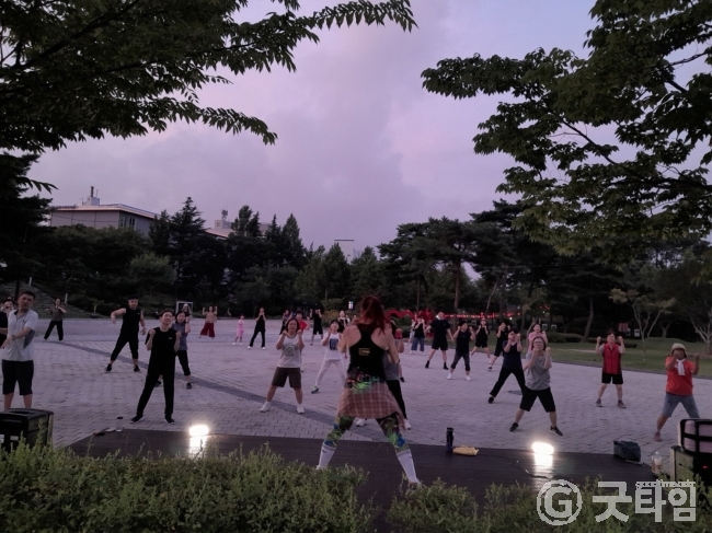 [굿타임] = 이강부 기자 = 논산 시민의 건강과 체력 증진을 위한 별밤건강체조가 많은 시민의 참여로 활기를 띄고 있다.
