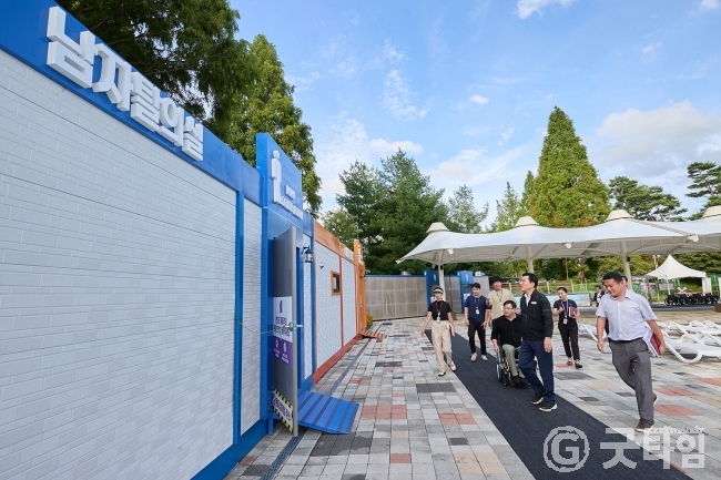 [굿타임] = 이강부 기자 = 박경귀 시장이 신정호 아트밸리 물놀이장에서 열리는 아트밸리아산 제2회 장애인 한바탕 물놀이 축제 현장 점검에 나섰다.