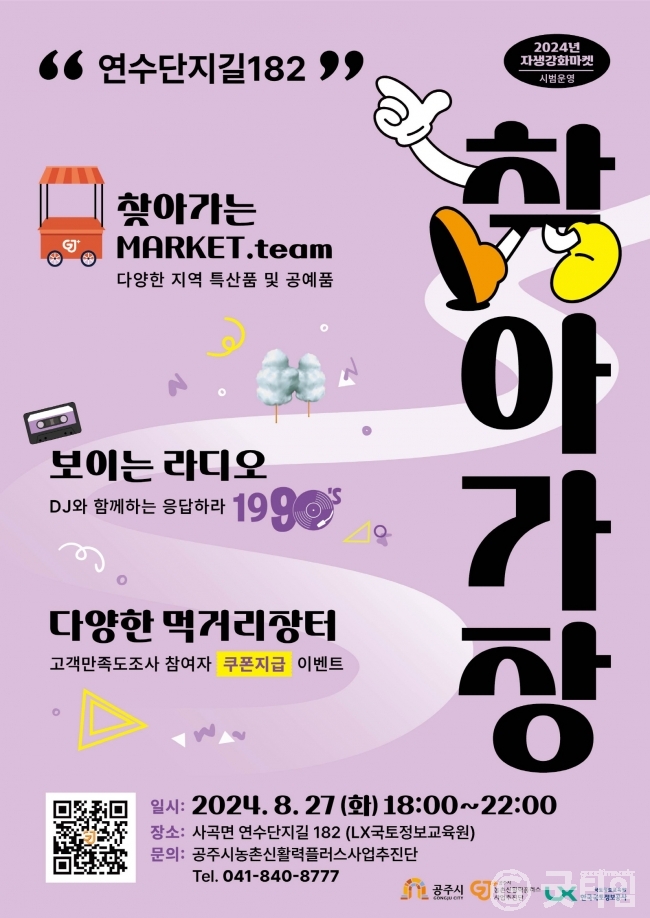 [굿타임] = 이강부 기자 = 공주시는 오는 27일 LX국토정보교육원에서 자생강화마켓 연수단지길182(LX) 찾아가장 행사를 개최한다.