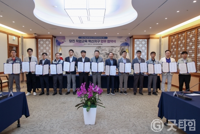 [굿타임] = 이강부 기자 = 당진시는 지역산업인재 육성을 위해 당진교육지원청과 10개 기업이 직업교육 혁신지구 운영 업무 협약을 체결했다.