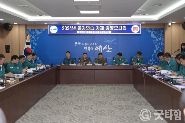 [굿타임] = 이강부 기자 = 예산군은 군수 주재로 각실과소장, 유관 기관 관계자 등이 참석한 가운데 지난 8월19일부터 22일까지 4일간 실시한 을지연습 결과에 대한 자체 강평보고회를 개최했다.