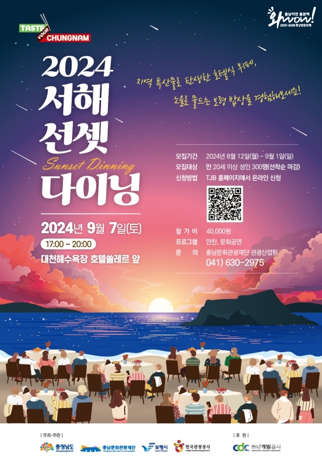 [굿타임] = 이강부 기자 = 충남도는 보령 대천해수욕장 머드광장 일원에서 Taste your 충남, 2024 서해 선셋 다이닝 행사를 개최한다.