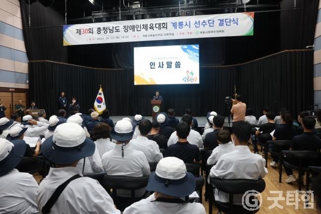 [굿타임] = 이강부 기자 = 계룡시는 계룡문화예술의전당에서 제30회 충남도장애인체육대회 출전 선수단 결단식을 가졌다.