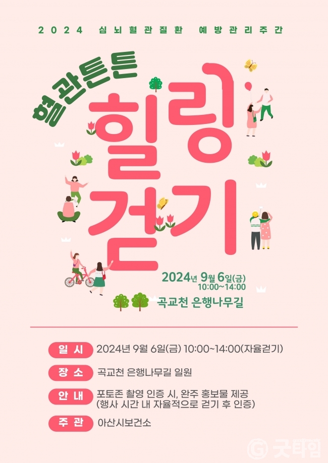[굿타임] = 이강부 기자 = 아산시는 오는 6일 오전 10시부터 오후 2시까지 곡교천 은행나무길에서 혈관튼튼 힐링걷기 행사를 진행한다.