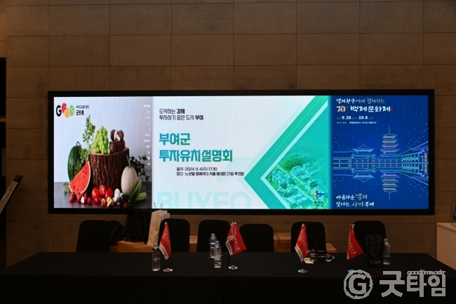 [굿타임] = 이강부 기자 = 부여군은 서울 노보텔 앰배서더 동대문 호텔에서 한국외국기업협회 회원사를 대상으로 2024 부여군 투자유치설명회를 개최했다.