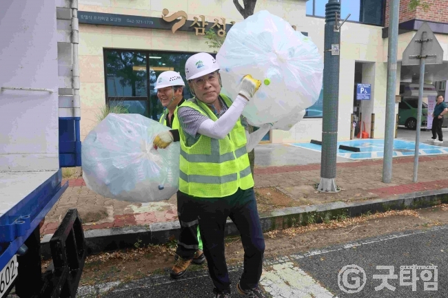이 시장은 환경공무직 직원들과 함께 관내에서 분리배출 되는 재활용품을 수거하고 직접 회수한 재활용품을 계룡시 생활자원회수센터로 운반해 재활용품을 선별하는 현장 체험까지 자원순환 전반의 과정에 직접 참여했다.