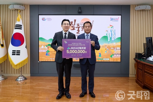 [굿타임] = 이강부 기자 = 아산시산림조합은 관내 취약계층 대상 김장나눔행사를 위한 후원금 500만원을 아산시에 전달했다.