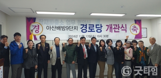 [굿타임] = 이강부 기자 = 아산시 배방읍 세교9리 아산배방9단지 경로당이 개소식을 갖고 문을 열었다.