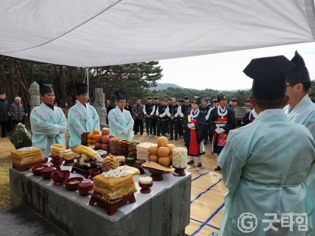 [굿타임] = 이강부 기자 = 충무공 이순신장군의 기신묘제가 사)해병대전우회 충남연합회 아산지회 주관으로 충무공의 묘소가 위치한 어라산 일원에서 개최됐다.