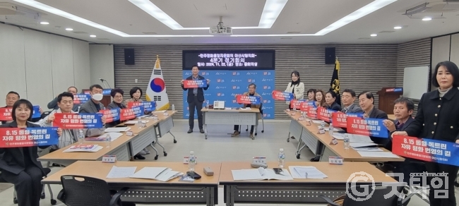 [굿타임] = 이강부 기자 = 민주평화통일자문회의 아산시협의회는 아산시청 중회의실에서 자문위원 30여명이 참석한 가운데 2024년 4분기 정기회의를 개최했다.