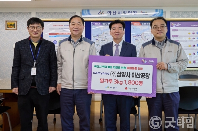 [굿타임] = 이강부 기자 = ㈜삼양사 아산공장이 아산시를 방문해 복지사각지대 지원을 위한 밀가루 총5400kg(1800봉/3kg)을 전달했다.