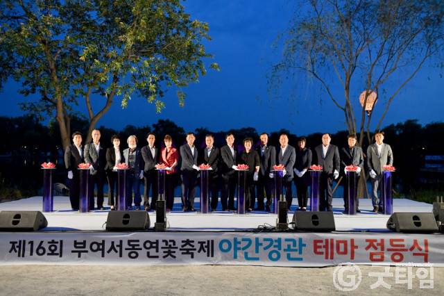 [굿타임] = 이강부 기자 = 부여군은 지난 22일 서동공원인 궁남지 일원에서 제16회 부여서동연꽃축제의 사전 축제분위기 조성을 위한 야간 테마 점등식 행사를 가졌다.