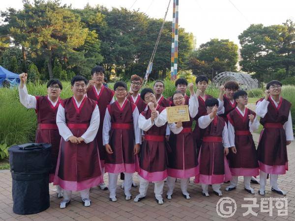 [굿타임] = 이강부 기자 = 발달장애인 전통문화예술단 얼쑤는 천안단오난장축제 풍물경연마당에서 웃다리사물놀이로 금상을 수상했다.
