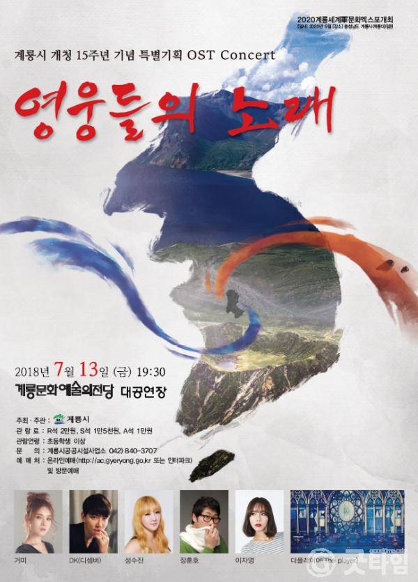 [굿타임] = 이강부 기자 = 계룡시는 오는 13일 계룡문화예술의 전당 대공연장에서 OST 콘서트 영웅들의 노래를 선보인다.