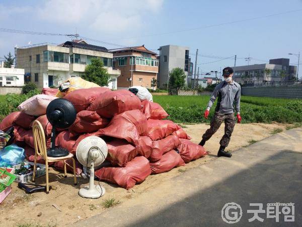 [굿타임] = 이강부 기자 = 예산읍행정복지센터와 1789부대 4대대 예비군지역대원은 18일 신례원1리 저장강박 가정을 방문해 청소 봉사활동을 실시했다.