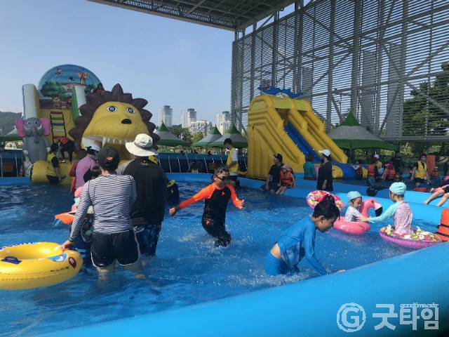 한편 지난 달 27일부터 오는 12일까지 운영되는 어린이 물놀이장은 유아용 에어풀장 2개와 아동용 조립식 풀장 1개를 설치해 운영 중이며 오전 10시부터 오후 5시까지 무료로 이용할 수 있어 여름방학을 맞은 아이들에게 인기 만점이다.