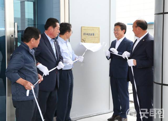 이중 비츠로셀의 경우 지난해 예산 공장이 전소하는 화재피해에도 불구하고 단 한 명의 인력 구조조정 없이 당진에 공장을 신설하며 오뚝이처럼 일어선 신화로 주목받고 있는데 6일 진행된 이곳의 현판 달아주기 행사에는 김홍장 시장도 참석해 기업의 발전을 기원 했다.