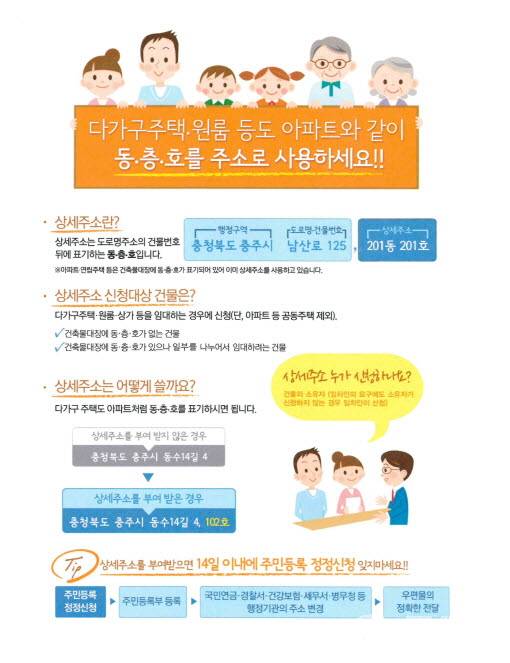 이에 8월 한 달 간 관내 원룸과 다가구주택 밀집지역을 대상으로 사전조사를 실시하고 읍면 행정복지센터에 홍보 안내책자를 비치해 자료를 수집 한 후 내달 중순까지 상세주소를 부여하고 통지할 계획이다.