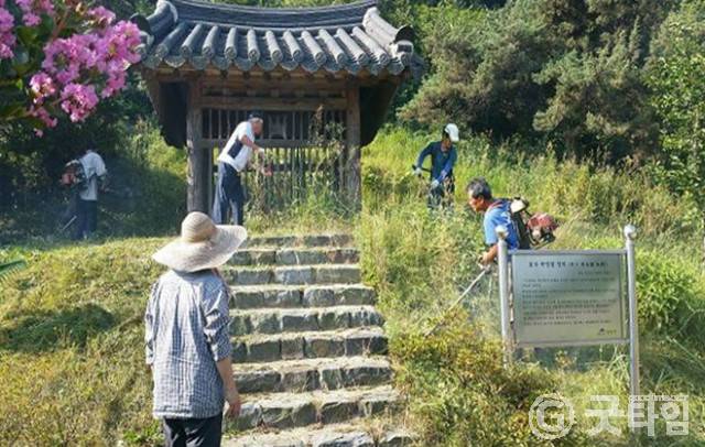 [굿타임] = 이강부 기자 = 바르게살기운동 비봉면위원회는 효자문이 설치된 중묵리 등 총5개소에 대해 제초작업과 환경정화활동을 실시한 후 관산리 체험관에서 회원 간 친목 도모의 시간을 가졌다.