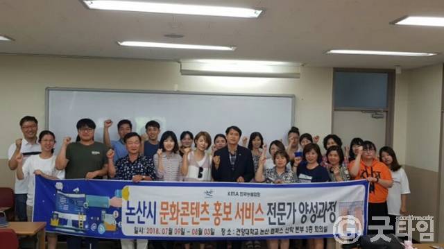 논산시는 지난 7월 9일부터 8월 3일까지 시민 30명을 대상으로 건양대 산학본부 회의실에서 문화콘텐츠산업 전문 홍보서비스 인력을 양성을 통한 지역문화관광산업 활성화 촉진을 위해 문화콘텐츠산업 집중육성 프로젝트를 실시했다.
