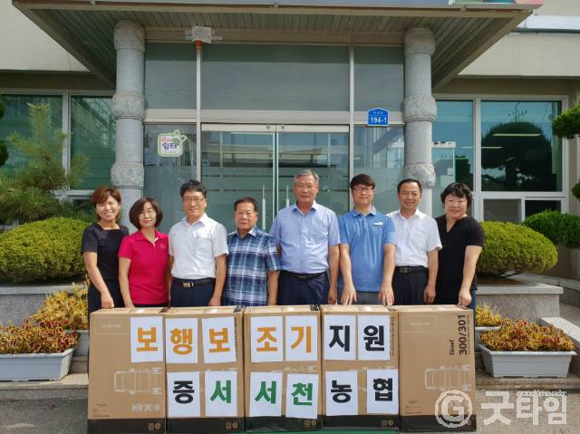 [굿타임] = 이강부 기자 = 서서천농협은 비인면사무소를 찾아 관내에 거동이 불편한 어르신들을 위한 보행보조기 5대를 행복비인 후원회에 기증했다.