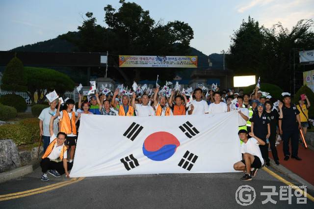 참가자들은 대형태극기 퍼포먼스를 시작으로 예산초등학교에서 출발해 보건소, 석탑아파트, 예산고등학교를 거쳐 예산초등학교로 돌아오는 4.5㎞ 구간을 걸으며 광복절의 의미를 되새기고 체력증진과 화합을 도모하는 시간을 가졌다.