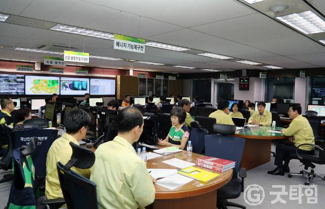 [굿타임] = 이강부 기자 = 허태정 대전시장은 24일 새벽 5시 30분 시 재난안전대책본부에서 태풍 솔릭 대처상황을 보고받고 피해상황을 점검했다.